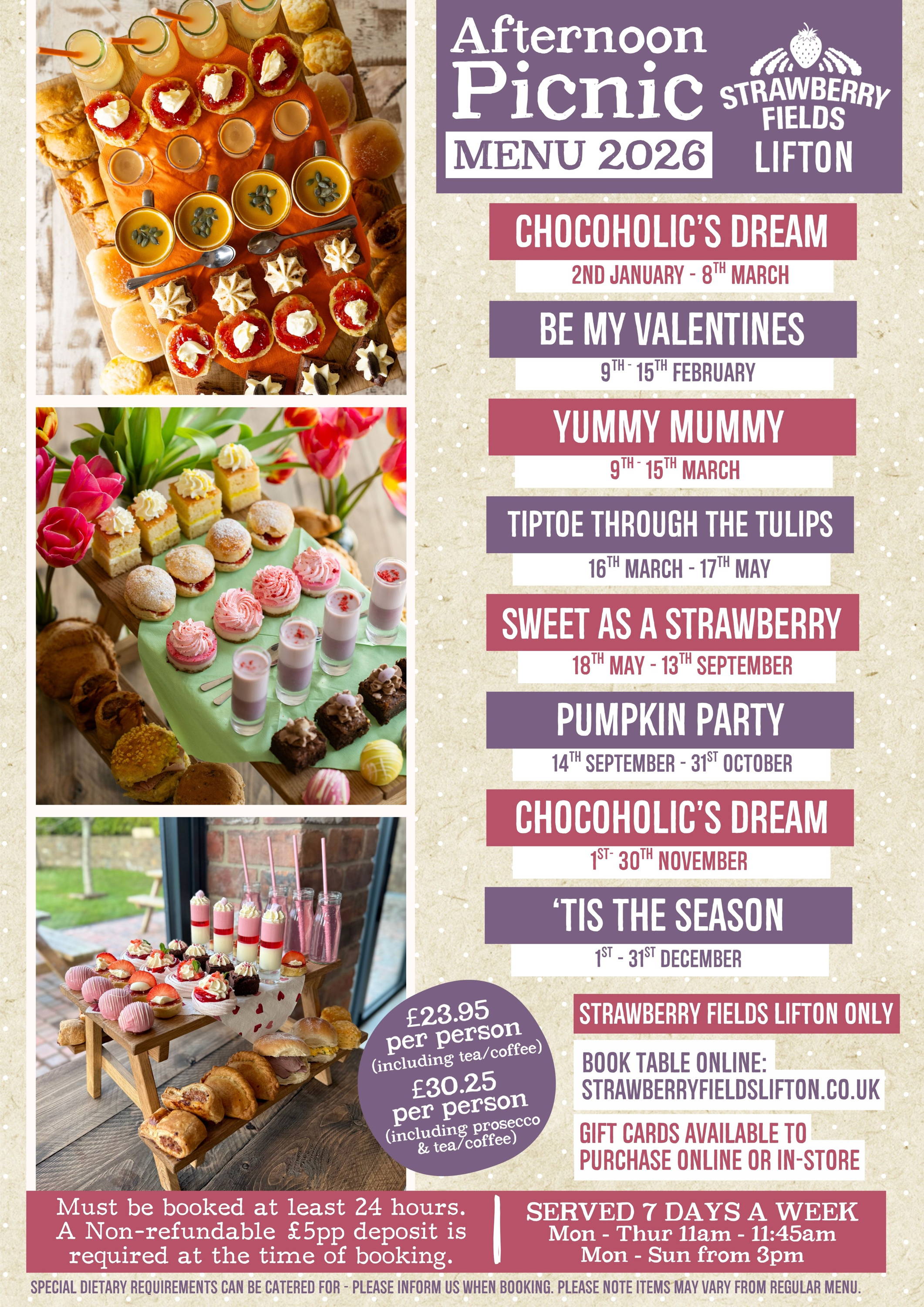 Please note - our afternoon tea theme regularly changes, please see the full list of dates to confirm the theme on offer for your booking.